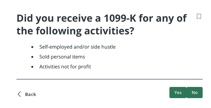takes accurate tax reporting seriously. That’s why we’ve spent much time and care optimizing our 1099-K reporting this year. We’ve added more detailed questions about what your 1099-K was for so we can help pull the proper tax forms for you.First, we’ll ask you for information about what types of income you’ve earned this year: